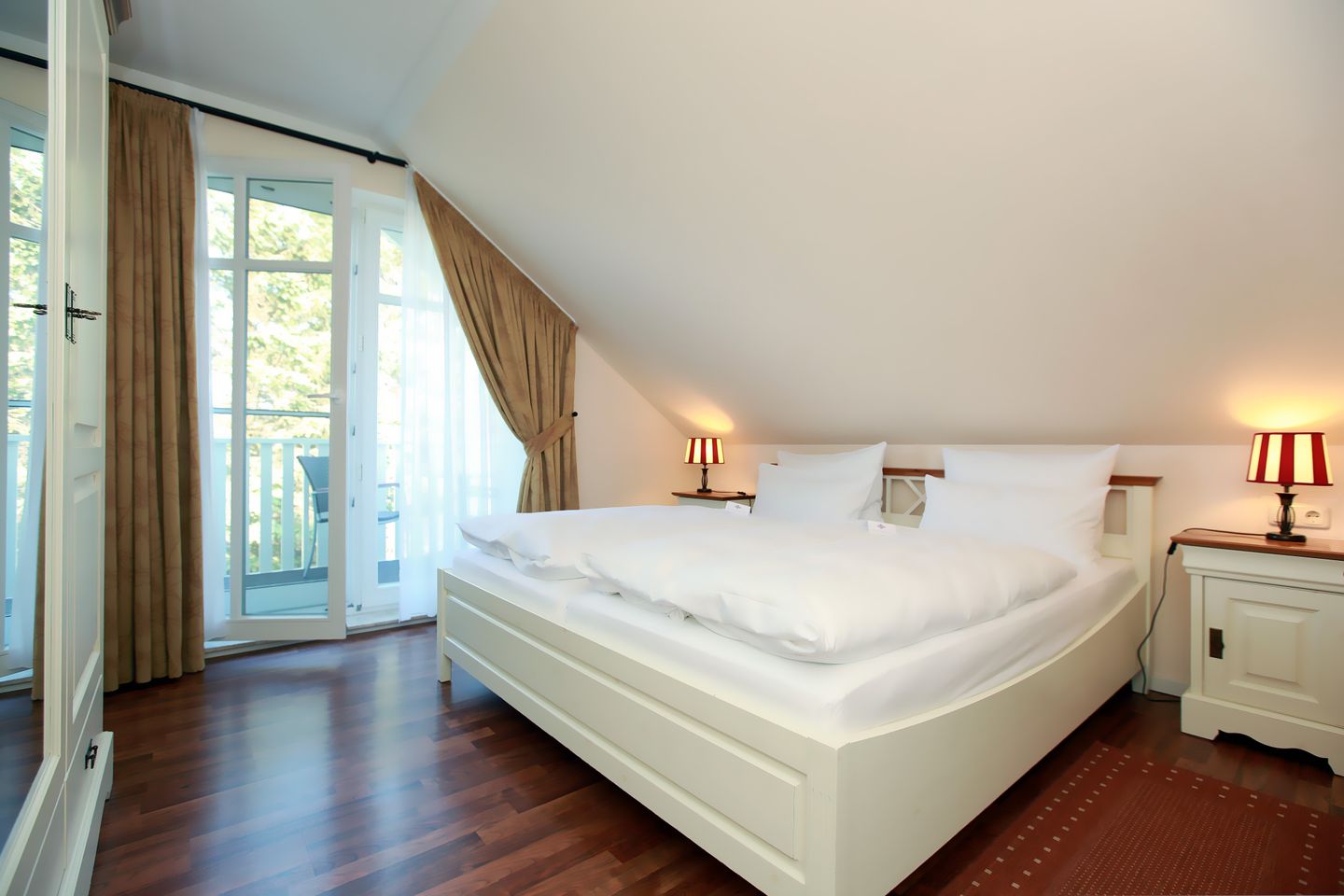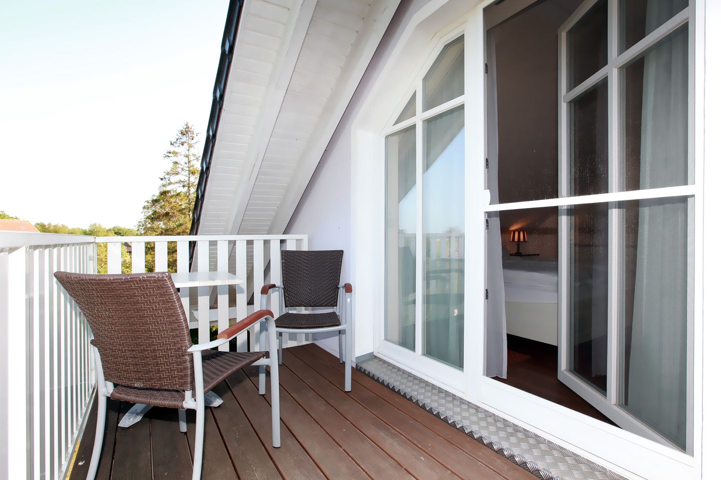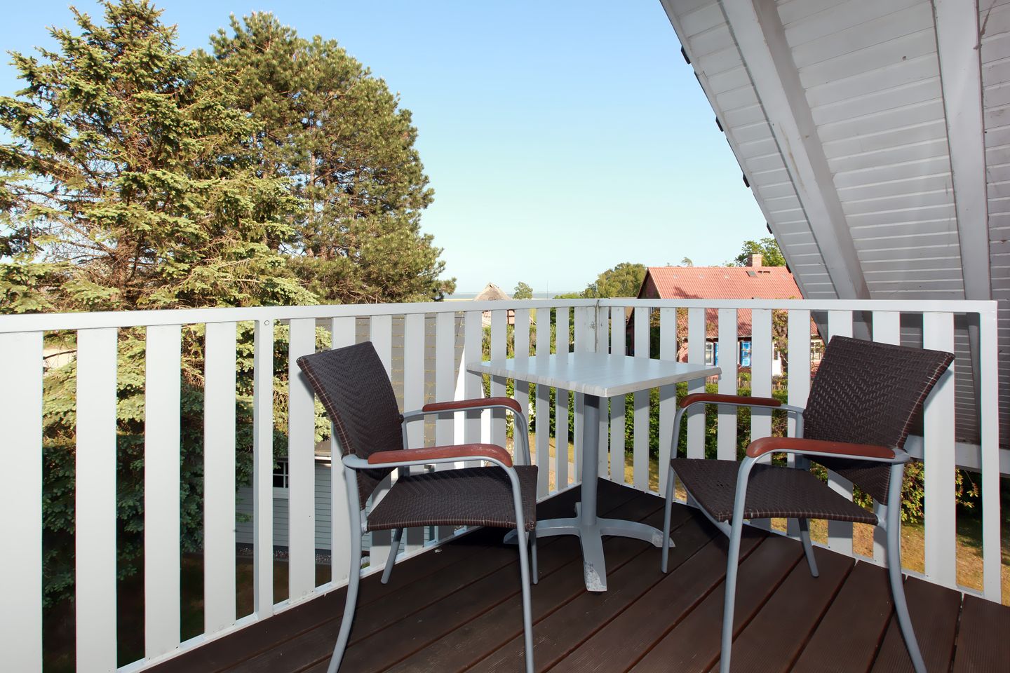 Das Apartment Deluxe im APARTHOTEL SAATMANN befindet sich im zweiten Obergeschoss und besitzt eine Fläche von 40 qm. Es verfügt über ein Schlafzimmer mit Balkon, Bad, Wohn-Essbereich, ebenfalls mit Balkon sowie der Aufbettungsmöglichkeit für 1 Person. Von diesem Apartment haben Sie einen herrlichen Blick auf den Saaler Bodden.