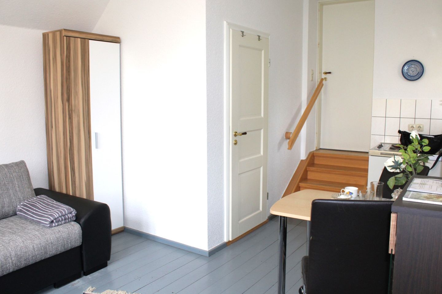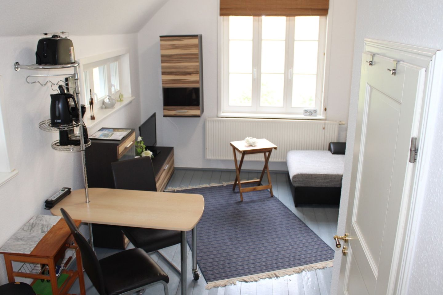 Die Ferienwohnung Muschel befindet sich in einem reetgedeckten, neu sanierten Ferienhaus mit insgesamt drei Ferienwohnungen in ruhiger Lage, direkt am Schifferberg. Die kleine, gemütliche Wohnung befindet sich im Dachgeschoss und verfügt über einen separaten Eingang. Sie besteht aus einem Zimmer mit ausziehbarer Schlafcouch, Flachbild-TV, Sitzgelegenheiten und Holzfußboden. Im Zimmer befindet sich eine kleine Küchenzeile und ein Küchenwagen. Das separate Badezimmer ist mit WC, Dusche, Waschbecken und Handtuchtrockner ausgestattet. Der großzügige Garten kann mitbenutzt werden und lädt zum Entspannen und Verweilen ein.