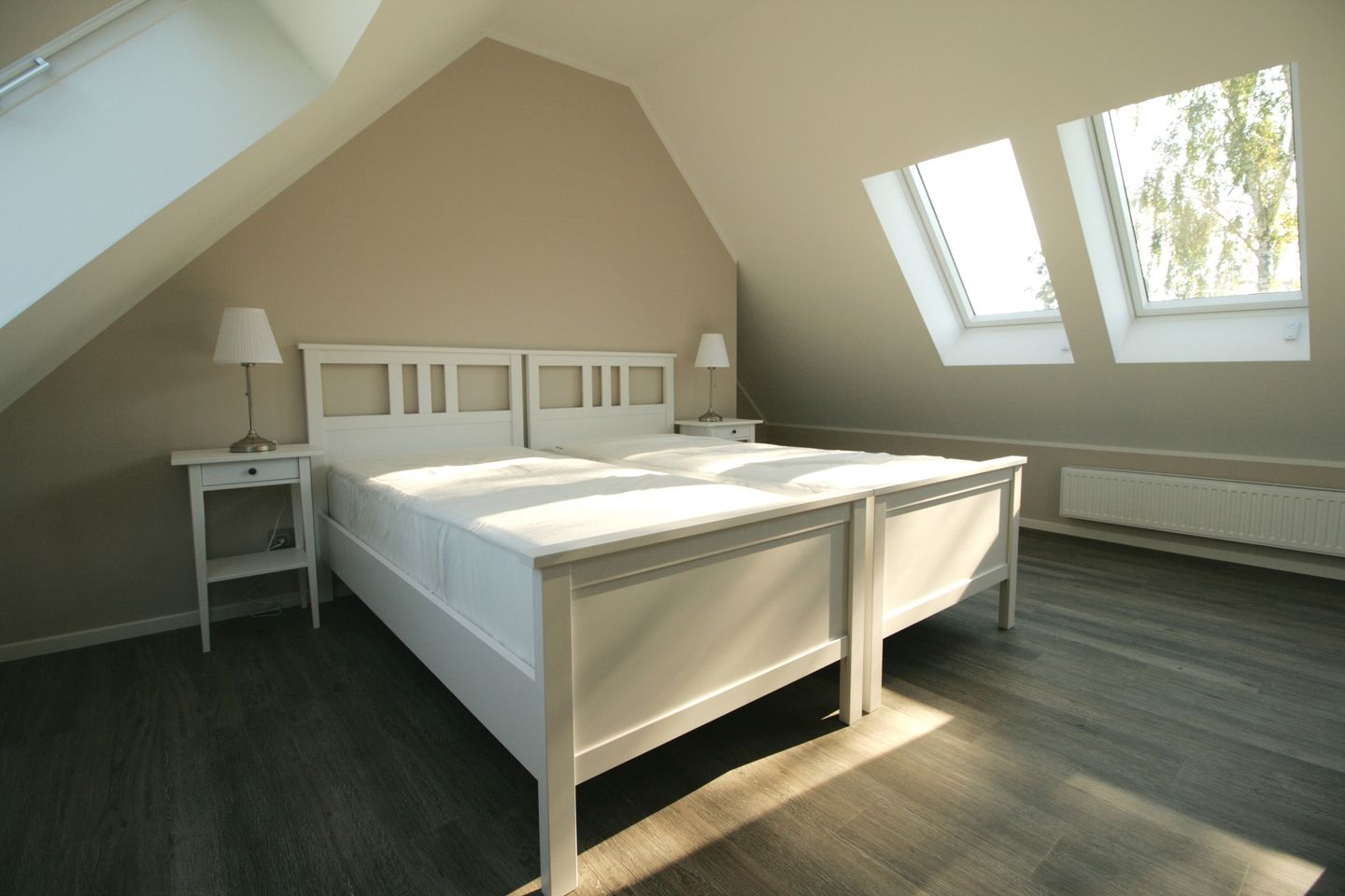 Es befindet sich ein Schlafzimmer im Obergeschoss und im Dachgeschoss befindet sich ein weiteres Schlafzimmer.